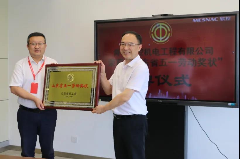 7月9日,膠州市總工會主席姜鵬、副主席孫衛(wèi)剛、生產(chǎn)部部長胡強(qiáng)一行到膠州裝備產(chǎn)業(yè)園為青島軟控機(jī)電工程有限公司榮獲2021年“山東省五一勞動(dòng)獎(jiǎng)狀”進(jìn)行授牌。軟控黨委書記、副總裁魯麗娜代表公司對領(lǐng)導(dǎo)們的到來表示了熱烈的歡迎和衷心的感謝;軟控機(jī)電公司總經(jīng)理武守濤代表公司接受授牌。